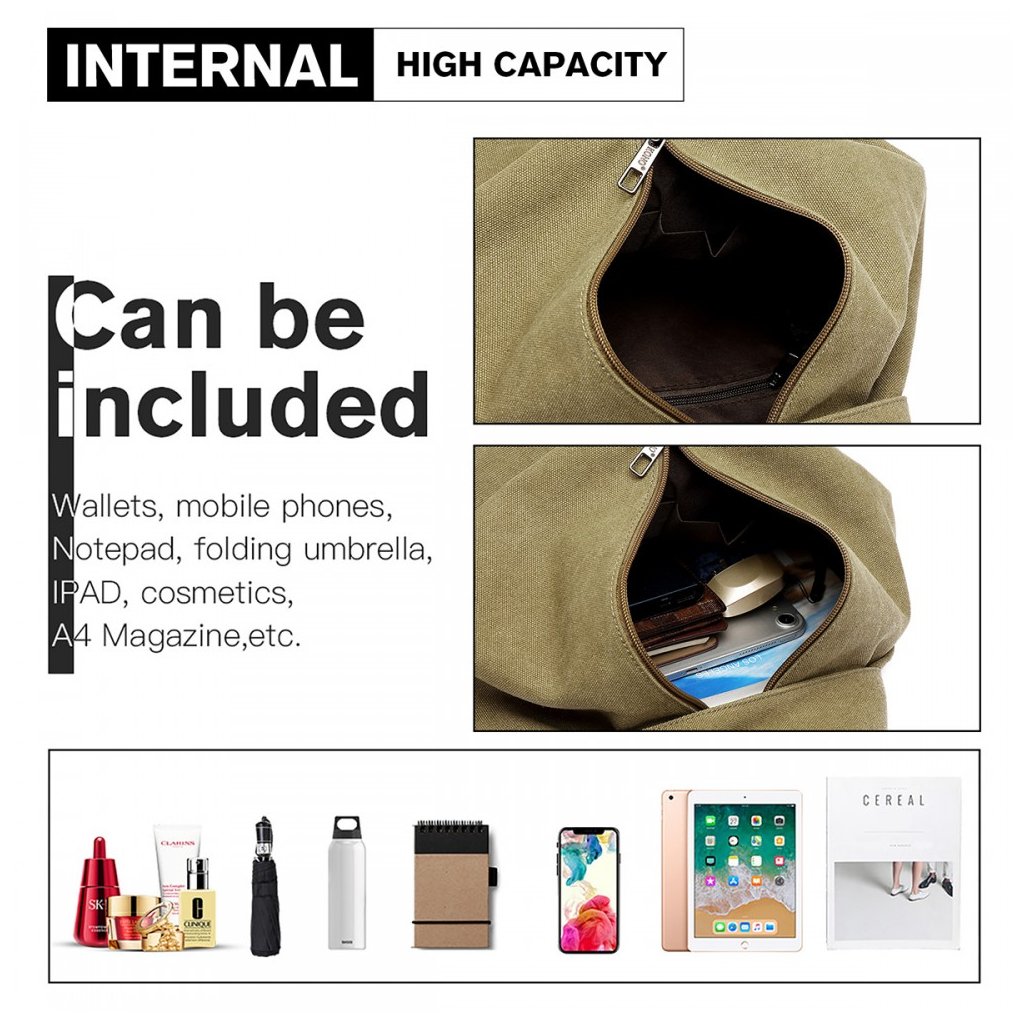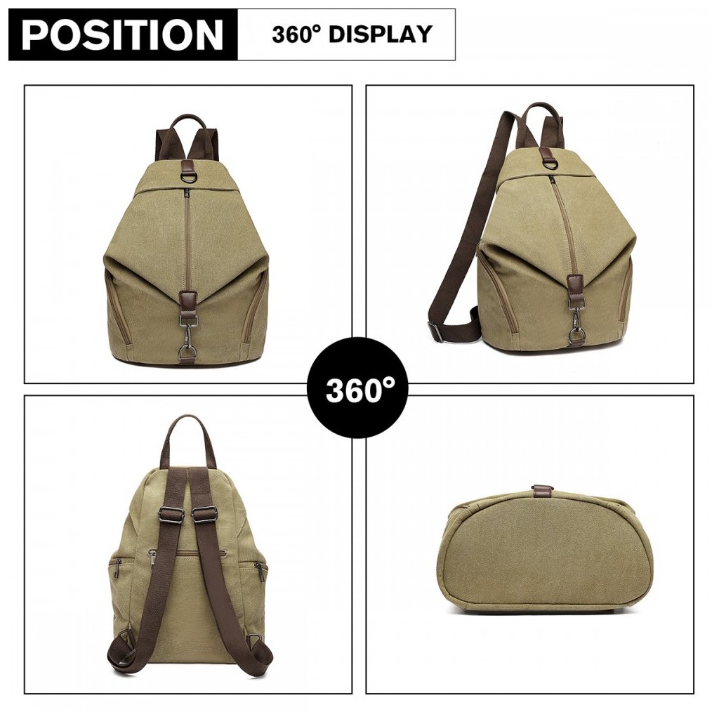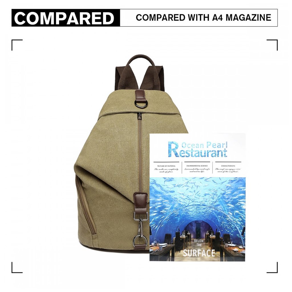 Ležérní batoh v barvě khaki s kontrastními popruhy si Vás získá.