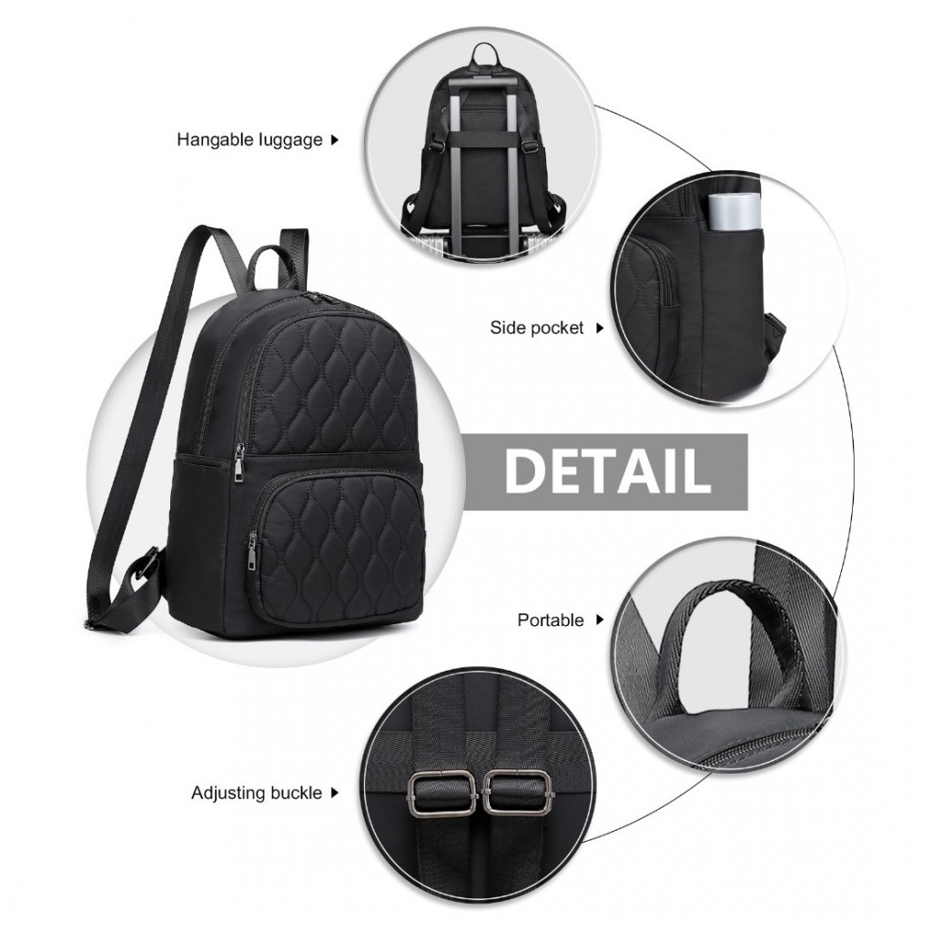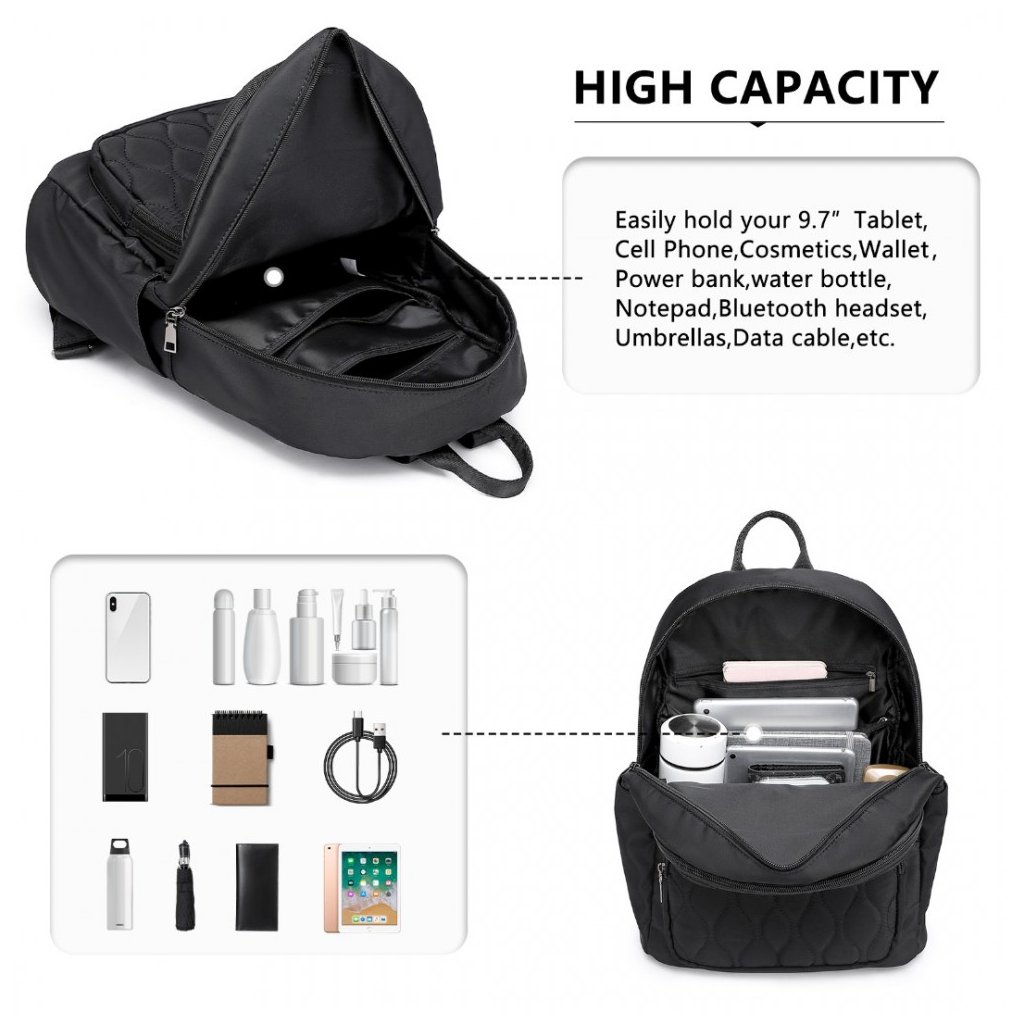 Stylový lehký batoh od značky Miss Lulu s bohatým vnitřním prostorem, v černé barvě.