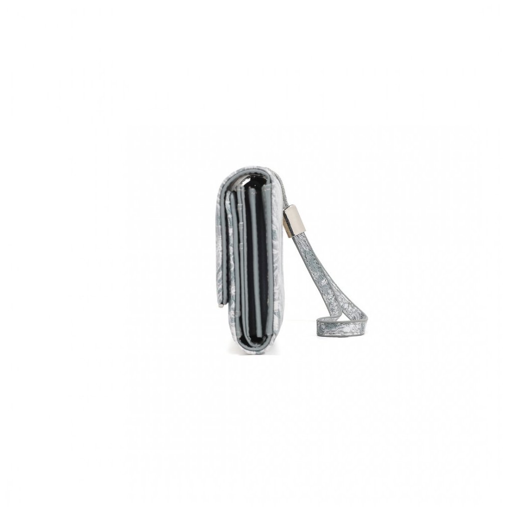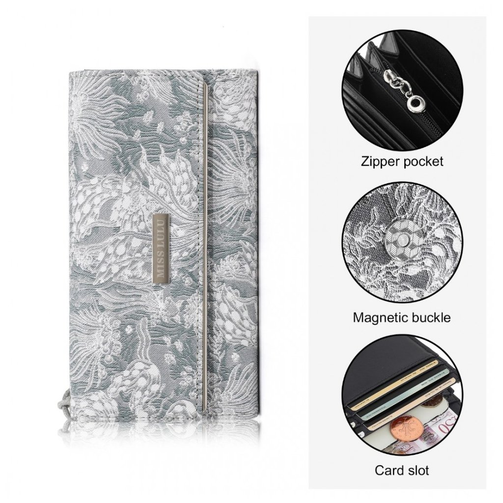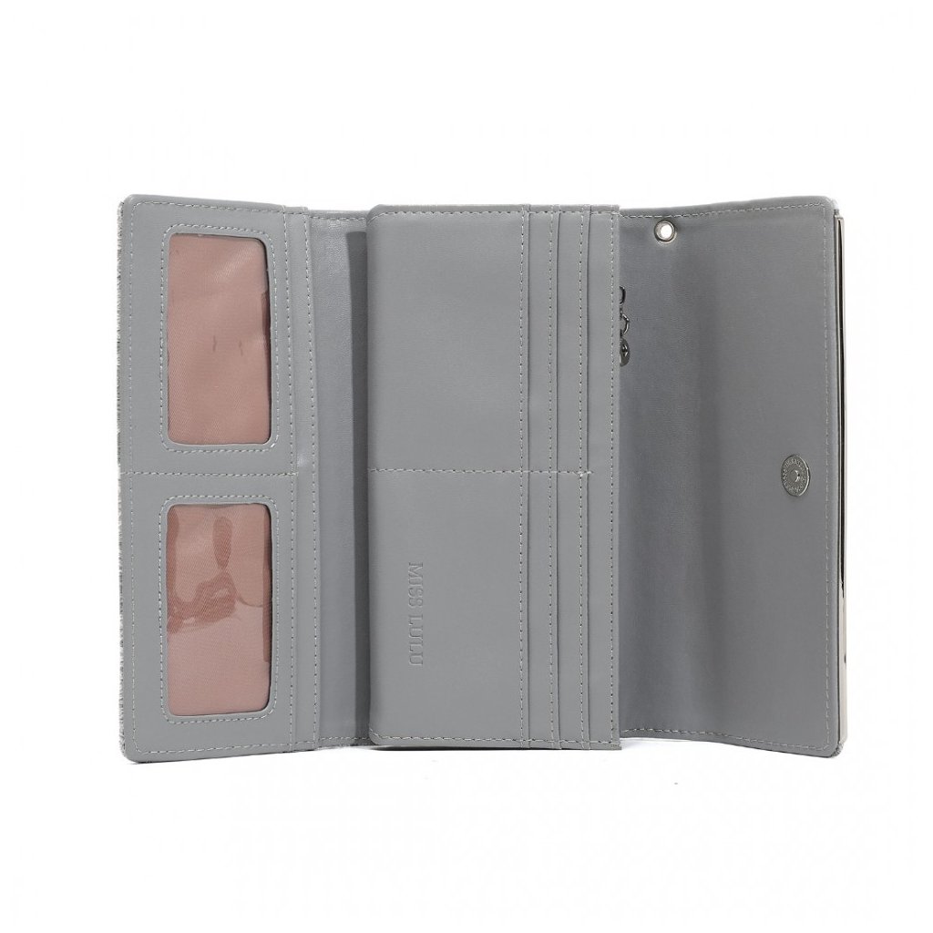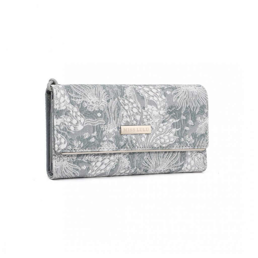 Luxusní šedá dámská peněženka z kolekce Miss Lulu s bohatě členěným vnitřním prostorem, včetně zipové kapsy na drobné. Peněženka v originálním strukturovaném designu s ornamenty.