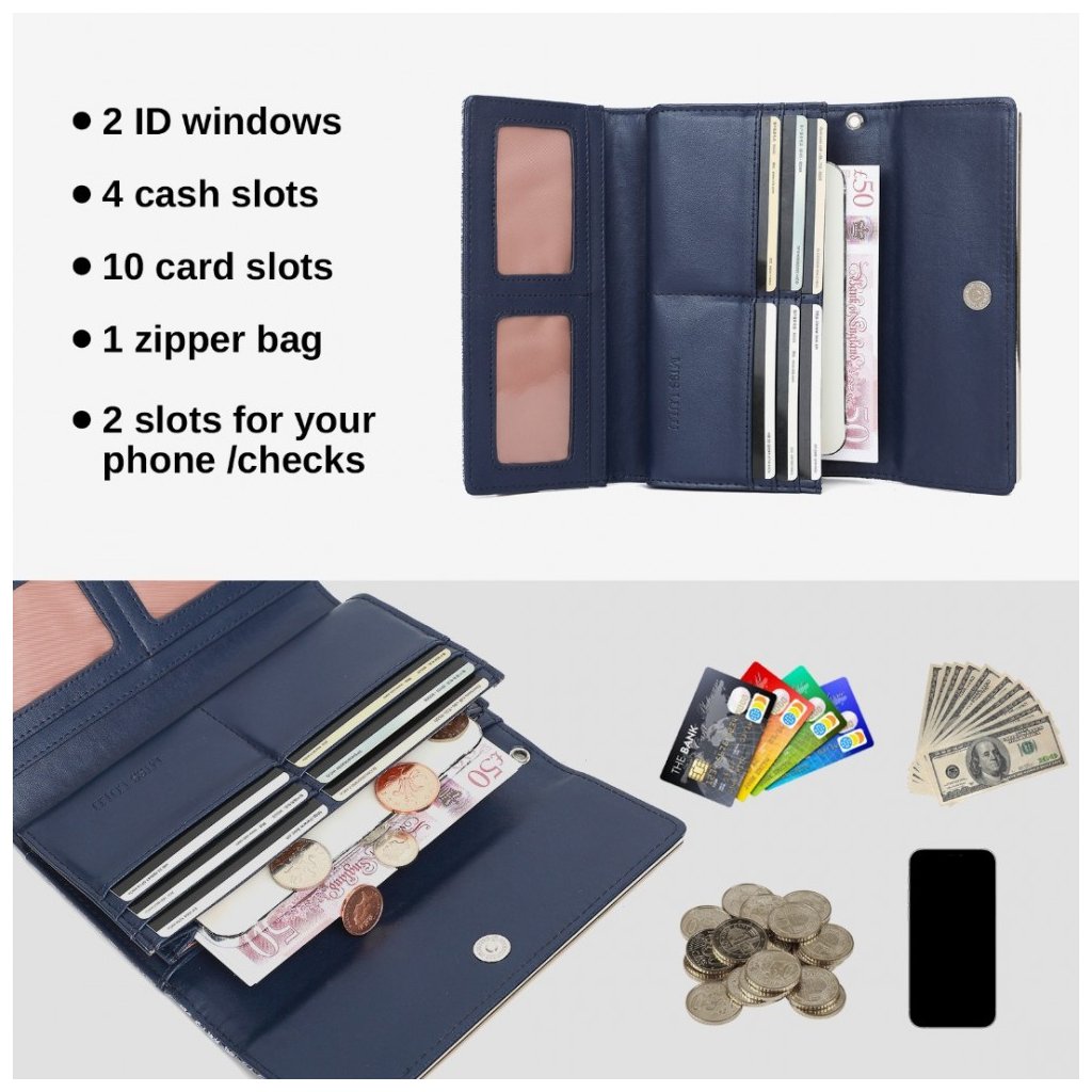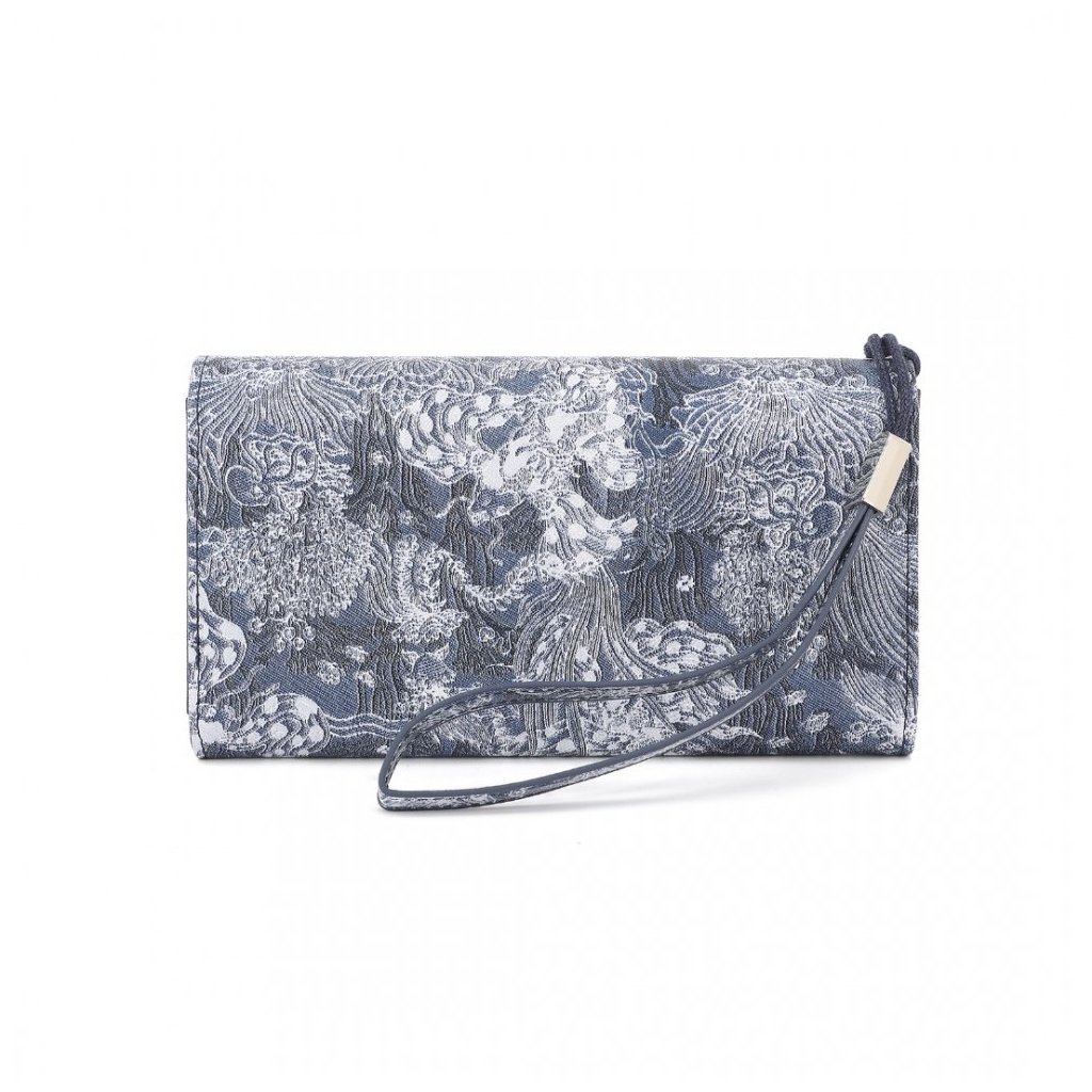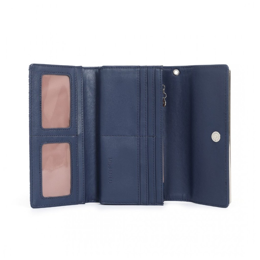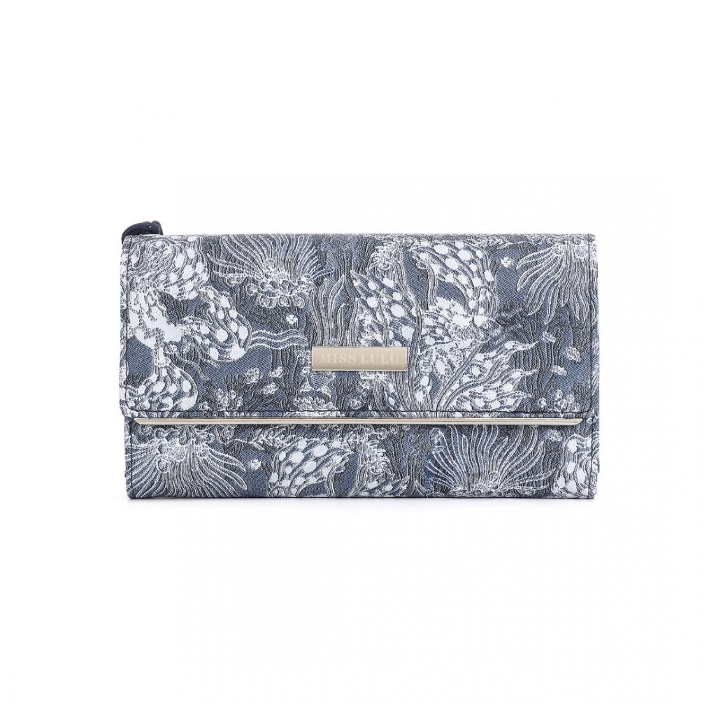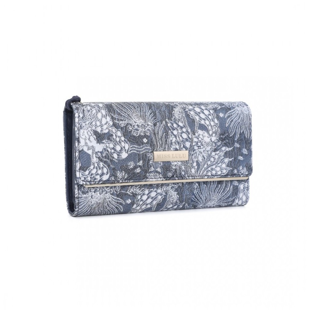 Luxusní tmavě modrá dámská peněženka z kolekce Miss Lulu s bohatě členěným vnitřním prostorem, včetně zipové kapsy na drobné. Peněženka v originálním strukturovaném designu s ornamenty.