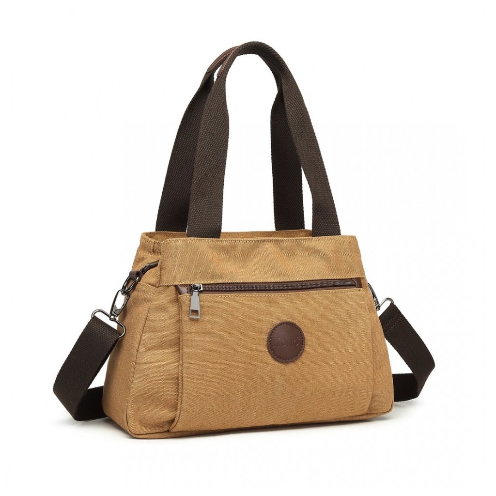 Neformální prostorná kabelka ve světle hnědé barvě, vyrobená z režného pevného plátna (canvas), která skýtá hned tři vnitřní oddíly pro mnoho nezbytností. Ucha v kontrastní hnědé kůži. Lehká, prostorná a odolná kabelka pro každodenní nošení.